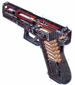 Буквально все описания пистолета "glock", грешат рекламой, акцентирующей внимание на абсолютной безопасности этого оружия, которую обеспечивают три независимых предохранителя. При нажатии на спусковой крючок они отключаются, а при его отпускании — включаются. На самом деле "glock" ничуть не безопаснее, скажем, "Вальтера П-5", "Сент-Этьена" и многих других пистолетов. Все эти пистолеты можно смело носить с патроном в патроннике, при этом у "Вальтера" — два предохранителя, у "Сент-Этьена" – их нет вовсе, а у "glock" — целых три. Так что здесь налицо некоторый перебор; некоторая перегрузка, если рассматривать только систему безопасности.