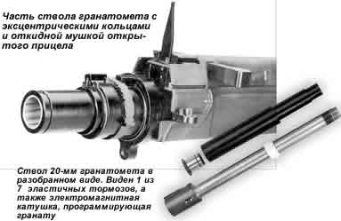 Взрыватель расположен в центре боеголовки гранаты. В устройстве выбора цели оптоэлектронного прицела fcs находится программирующий модуль, который в зависимости от условий боя, программирует взрыватель гранаты.