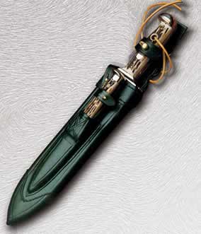 совершенно негигиеничны, зато очень хороши (и к тому же красиво выглядят) наборные рукояти из такого доступного материала, как береста. Пластмассы различных видов и сортов прочны и гигиеничны, однако ручки, изготовленные из них, зачастую неудобно держать в руке, — они скользкие и холодные на ощупь. Компромиссные решения предлагают зарубежные фирмы, выпускающие ножи с рукоятками, покрытыми слоем неопренового каучука, которые весьма прочно удерживаются в руке. Традиционный материал, применяемый оружейниками Европы, — олений рог или его имитация, многие испанские и французские фирмы отдают предпочтение рогу крупного рогатого скота, буйволов, предварительно выпрямляя его в нагретом состоянии. Металлические части изготавливают из цветных металлов и сплавов или из нержавеющей стали. Большинство солидных зарубежных фирм используют для изготовления рукояток дерево — как натуральное, так и в виде фанерного блока, хорошо пропитанного синтетическими смолами. Текстура дерева при этом сохраняется, а по остальным характеристикам такие рукоятки приближаются к пласмассовым. " class="centertable" >