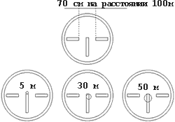 Примерная проекция луча в прицеле ПО–35 и поправки на дальность