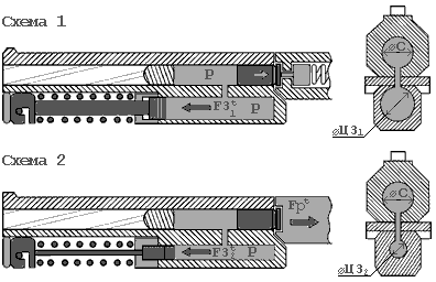 Это условие запирания действительно при одинаковом pt. На самом деле в начальный момент выстрела давление в стволе pсtбольше, чем давление в полости цилиндра pЦзt. Затем оно выравнивается и через некоторый промежуток времени pЦзtстановится больше, чем pсt. Данное явление объясняется инерционностью и определяется конкретным диаметром перепускного отверстия. Чем больше диаметр перепускного отверстия, тем больше вероятность временного равенства давления, когда pct= pЦзt. При слишком больших значениях диаметра может возникнуть случай, когда затвор не откроется совсем.