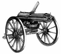 Пушка, сконструированная Ричардом Гатлингом в 1861 г., — уникальное скорострельное многоствольное оружие револьверного типа, намного опередившее свое время. Над доработкой и совершенствованием этого оружия, предназначавшегося для обороны зданий, крепостей и улиц, Гатлинг работал в течение многих лет. Со временем такие пушки были приняты на вооружение во многих армиях мира.В 1893 г. Р.Гатлинг сконструировал "электрический пулемет", послуживший прообразом современных многоствольных скорострельных пушек типа "Вулкан".