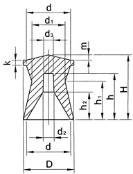 | D | d | d1 | d2 | d3 | H | h | h1 | h2 | k | m | |||