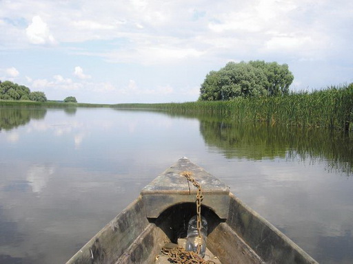 Мерный плеск весел не нарушает покой летнего дня. Ласточки береговушки, мягко «джуркая», носятся над голубой гладью реки. Время от времени то одна, то другая черкает клювом по воде, утоляя жажду. От ласточек взгляд скользит к берегам, зеленеющим травами, кустами и вербами, рассеянными по лугам. Поодаль видны копны свежего сена, будто спины пасущихся сказочных зверей. Вечереет. Красное солнце проглядывает среди вытянутых синих облаков у горизонта.