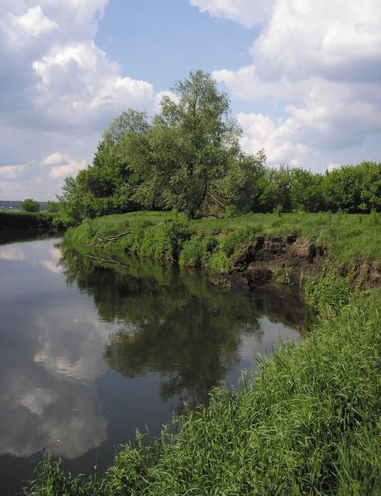 Ирпень за сентябрь без дождей обмелел, вода просветлела, на глубинках по омуткам дно видно. По левому берегу спиннингист ходит, и вытащил щучку, а у меня только окунь сошел. У берега кое-где щурята-карандаши стоят и стрелой бросаются вглубь, когда прохожу мимо. Над поймой, вниз к Днепру прошумела тугими крыльями большая стая крякв — птиц сто, следом еще две прошли, поменьше. Мелькают над лугом осенние бабочки-желтушки, степенно летят к югу бабочки-адмиралы с красными и белыми лентами на бархатно-черных крыльях, присаживаясь на белые цветки ярутки. Коль не ловится щупарь, я червяков на лугу копнул и, размотав поплавочную удочку, принялся ловить в проводку по глубинкам. Изредка лениво клевали крупные трехвершковые пескари, причем, брали только на целого червя. На одном месте пара-тройка рыбешек попадется и надо переходить на другое. Стою на крутом берегу, за осокоревым поплавком слежу. Справа, на воде глаз какое-то движение приметил — по течению бобр с веткой плывет! Голова и темно-коричневая спина из воды выступают, хвост чешуйчатый, широкий, как весло. Так и проплыл у меня под ногами совсем близко, удочкой до него можно было дотянуться. Под вечер к юго-западу дымчатым облаком прошла большая стая диких голубей-вяхирей. Отлетают. Солнце золотым кругом зависло над дальними взгорьями речной долины. В вечерней тишине послышалось громко: крон-крон, и зашумели тугие крылья. Пара черных воронов, падая и взмывая, переворачиваясь набок, заиграла над темнеющим лесом…