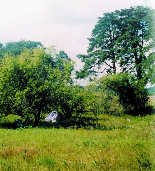 Автобус отошел точно по расписанию, и через три с половиной часа приехали. По всему селу опрятные огороды темнеют вскопанным черноземом, зеленеют грядки чеснока и лука. Хозяева, у которых мы иногда ночевали, расчищают клубничник. Поздоровавшись и немного поговорив — всем некогда — отправляемся в путь через лужки и разливы к реке. Уже слышна кукушка, а в лозах «протехкал» первый соловей, слишком уж рано в этом году. Через часа полтора мы на знакомом берегу. Ставим палатку. Стелим сосновый лапник, вырезаем стойки и колышки. Хор квакш у залива оглушает весеннюю ночь. Утро встречаем с песней юлы. По берету бегает белая трясогузка, вторая щебечет на ветке тополя. От горизонта веером расходятся перьевые облака.