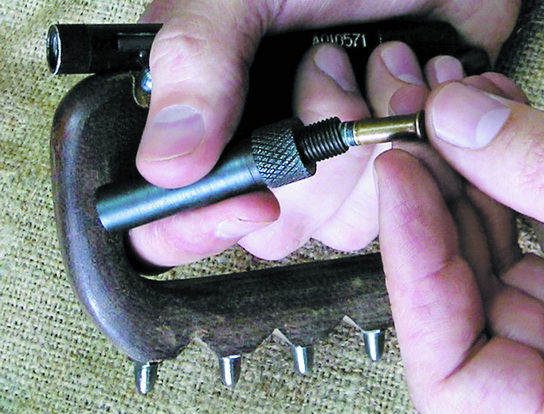 Мое знакомство с самодельным стрелковым оружием заняло гораздо больше времени, чем я предполагал. Во время очередной встречи с сотрудниками НИЭКЦ при УМВД Украины в Луганской области я заинтересовался непонятной штуковиной, изготовленной из обрезка квадратного профиля, к которому сзади было приторочено пружинное кольцо от ключей. Внутри явно располагался какой-то механизм. Оказалось, что это вполне работоспособное стреляющее устройство, изготовленное к тому же довольно остроумно.