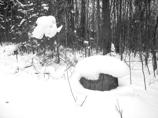 Разведя костер, мы присели передохнуть. Претерпевая муки Тантала, я и не подозревал, что сидящий рядом со мной у пылающего костра Тит, подобно ветхозаветному Моисею, и также при помощи жезла, может добыть воды сколько угодно, что было исполнено им следующим образом. Сначала Тит вырубил в осиновом чурбаке углубление в форме чаши, вместимостью стаканов пять, а затем, воткнув с наклоном к огню свой походный посошок с развилкою на конце, насадил на него огромную глыбу снега, заостренную внизу наподобие конуса. Не прошло и пяти минут, как от действия огня глыба начала быстро таять, а вся вода собираться к обращенной вниз вершине конуса, с которой она тотчас же потекла одной непрерывной и обильной струей в подставленный сосуд. По мере наполнения последнего, нам оставалось только припадать к этой импровизированной чаше жадными устами и пить без конца.