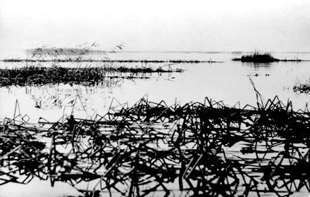 Ширь голубых плёс раскинулась вокруг до горизонта в обрамлении желтовато-бурых высоких тростников и рогозов. На воде распластаны поредевшие, пожелтевшие, потрепанные ветром и побитые заморозками листья кувшинок, стебли стрелолистов и темно-зеленые пряди курчавого рдеста — «щучьей травы». Кое-где вышли из обмелевшей воды илистые островки. Уток не видно, хотя на базе дед-рыбак говорил, что на плёсах ее «тучи». Наверно, утка тут была утром. Охота лишь послезавтра, так что пока буду рыбачить. Собираю трехколенный самодельный бамбуковый спиннинг — подарок отца, вяжу груз и самодельную блесну-вертушку на аршинном поводке. Ловлю, делая забросы метров на 25-30, и поглядываю вокруг. Вода под солнцем блестит, как зеркало в золотой оправе тростников. Она просветлела, и на глубине в рост видна каждая ракушка, корешок, стебель водоросли или утонувший ивовый листок. Легкой, сияющей, голубоватой дымкой подернуты дали, и кажется, будто три лодки рыбаков на середине плёса парят в ней над водой. Сквозь прозрачный осенний воздух взгляд летит далеко, далеко и сердце ликует от обилия света, чистой воды, тишины и покоя окрестных просторов.