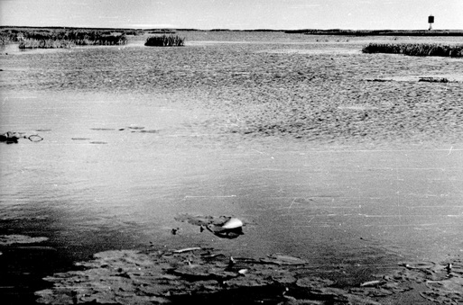 Окрыленный радостью поездки, я взираю на ширь воды и простор неба. Слева, поодаль тянется полоской возвышенный берег с сосновым лесом. Постепенно он отходит в сторону, уменьшается и, в конце концов, растворяется в синеющих далях. Часа через полтора появляются по сторонам заросли побуревших рогозов, изрезанные заливами и протоками. Слева, вдали завиднелись прямоугольные, дощатые щиты створов, указывающие устье р. Припяти. Отсюда, издали щиты кажутся небольшими фанерками. Над зарослями иногда покажется утиная стайка и, обгоняя теплоход, отворачивает, уходя на голубые плёсы по сторонам. У тростников кое-где темнеют челноками-лодочками плавающие лысухи. Зачарованно любуюсь на эти дорогие охотничьему сердцу картины. Наконец, показался невысокий луговой берег с зеленой травкой. В салоне началось движение — рыбаки и охотники готовятся к высадке. «Ракета», сбавляет скорость и причаливает. Это первая остановка — с. Теремцы. На охотбазе у егеря Ивана Степановича получаем весла, оранжевые спасжилеты, черпаки для воды, якоря-грузы из звена тракторной гусеницы. Все это сносим со своими вещами в выбранные лодки-дощаники. Через полчаса, под всплески весел, весело устремляемся вниз по широкому руслу Днепра в разливы водохранилища. Я плыву через ближнюю «первую протоку» на большой плёс ловить спиннингом. Дядя Леня отправляется к «третьей протоке» за спрятанными где-то там с лета своими удочками, сеном и дровами. Дров тут, на низких, мокрых островах мало, поэтому их запас не помешает. Договорились мы встретиться к вечеру на известном нам островке, в километре от припятских створов, где обычно мы с отцом ставим палатку.