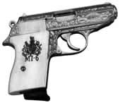Чтобы увековечить память о Дж. Бонде — агенте всех времен и народов — по заказу Американского исторического общества был выпущен первый коллекционный пистолет "Вальтер" РРК. Его роскошный позолоченный корпус с обеих сторон украшает гравировка, выполненная в традиционном стиле — с изображением желудей и дубовых листьев. Рукоятка, изготовленная из слоновьей кости, украшена резьбой с глубоким рельефом. На спусковом крючке выгравирован порядковый номер пистолета и надпись "МИ-6". К оружию прилагается сертификат подлинности, подтверждающий ручное изготовление и материал покрытия — 24-каратное золото. В основе специального покрытия, разработанного компанией "Магнум Рисерч", — нитрид титана, который, как уверяют специалисты фирмы, обеспечивает абсолютную защиту оружия от воздействия механических и климатических факторов. Твердость этого покрытия оценивается в 80 единиц по шкале Роквелла.