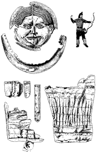 Для развития комплекса скифского вооружения было очень важным использование самого принципа изготовления оружия из отдельных частей унифицированного набора. Пластины набора с небольшими модификациями использовались практически для всех видов защитного оружия — панцирей, шлемов, боевых поясов, щитов, ножных доспехов, средств защиты боевого коня. Продуманная система расположения металлических пластин набора на обязательной кожаной основе позволяла располагать в любой точке доспеха пластины в 2–3 слоя.
