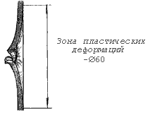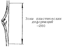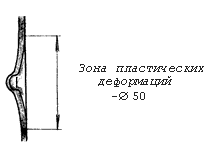 На первом этапе испытаний стрельба осуществлялась по мишени, изготовленной из листа алюминиевого сплава марки Д16АТ толщиной 3 мм. При этом полного пробития мишени пулями THV кустарного производства не наблюдалось. В большинстве случаев имело место сильное повреждение мишени с частичным пробитием, обширная зона пластических деформаций составляла около 50 см2 (рис. 7,8). Одновременно с этими испытаниями проводились отстрелы стандартными боеприпасами, снаряженными пулями со стальным сердечником массой 6,1 г. В результате этих отстрелов была достигнута 100%-ная пробиваемость мишени на дистанциях от 10 до 35 м. Следует отметить, что при стрельбе из пистолета ПМ патронами с пулями THV кустарного производства очень часто случались задержки, связанные с сильным раздутием гильзы и невозможностью ее экстракции из патронника. Большая деформация гильзы была связана с повышением давления форсирования во время предварительного периода выстрела вследствие увеличения извлекающего пулю усилия. Последнее связывают с наличием большой полости внутри пули. При выстреле происходило раздутие цилиндрической части пули сразу по всей поверхности контакта пули с гильзой, что привело к увеличению извлекающего пулю усилия и давления.