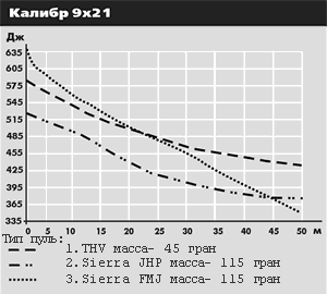 | 9х21 | Sierra JHP | 115 | 396 | 590 |