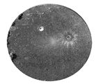 Рис.10.Образование кратера при попадании в лист из нержавеющей стали стандартной пули со стальным сердечником патрона 9х18 ПМ |