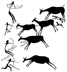Охота с луком на копытных. Наскальный рисунок. Испания