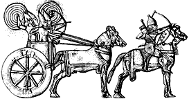 В Древнем Египте помимо пеших, были и лучники, стрелявшие с колесниц. На легкой колеснице, рядом с возницей, стоял стрелок. Хорошее представление об этом роде войск середины 13 в. до н.э. позволяет получить изображение колесницы, стоя на которой фараон Рамзес ii в битве при Кадеше (1288 г. до н. э.) стреляет по противнику — хеттам.