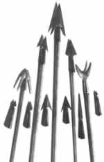Долгое время конструкции основных элементов луков, использовавшихся на охоте и в бою, были практически одинаковыми. Различия имели лишь наконечники стрел. С наступлением эпохи раннего железа появились типично боевые наконечники стрел. Хотя это вовсе не означает, что охотничьи стрелы не использовали на войне и наоборот. И только с появлением защитных вооружений наконечники стрел стали делать "узкоспециализированными": для поражения либо двуногой, либо четвероногой цели.